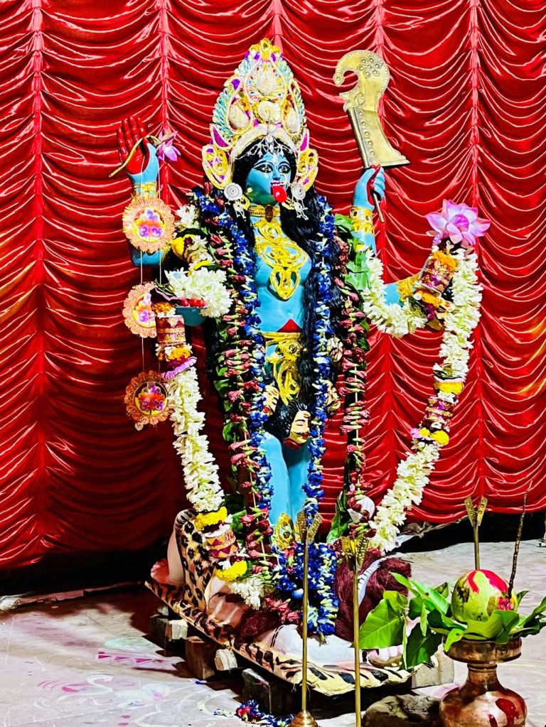 That is why Diwali celebrations are a strict vegetarian affair, but Kali Pooja has worshipers offering animal sacrifices (mostly lambs) to the Goddess. The meat (cooked sans onion, garlic) is given to devotees.